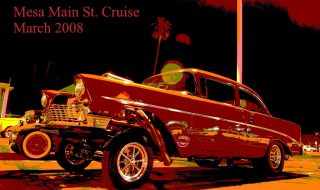 For more information on the November 8th, 2008 Memories on Main Street cruise, go to the Mainstreet Garage. While most parts of the US are still half frozen, Mesa, Arizona launches the first big cruise of the year (and first minor sunburn). Brought to us as, "POP's Memories on Main Street" by the Prostate Checkup All Sports Foundation, it was a good time had by all and we had near perfect weather for it. Cruising between Country Club and Mesa drive with parking on Main Street and in the several nearby city lots, for the $5 per car donation, I think everyone had a place. I was expecting a few more cars, but there was no lack of quality. Main street was lined with lawn chaired folks cheering for the next guy to, "light'm up!" I'm pretty sure Mesa PD did just that cause most burning rubber was followed closely by howling sirens. For the most part though, I think every had a good time enjoying their cars and making new friends. I know I did. Here are a few of the cars I especially liked. Most of the...