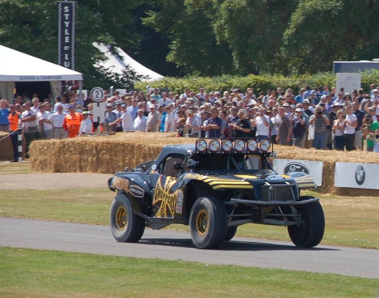 It seems Bruce wasn’t the only American at Goodwood by far, we heard that Jay Leno was over as well, though we didn’t see him (probably smoked out in the VIP area by the NASCAR Camry!) as well as bike builder/TV celeb Jesse James and his wife actress Sandra Bullock. Jesse had brought over his monster Baja truck which stormed up the hill lurching all over the place, it then tore up the Rally stage somewhere up the hill.