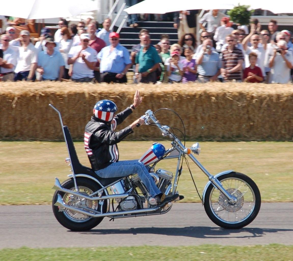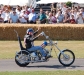 Bikes, especially Choppers were a big theme at Goodwood this year with plenty on display including a tribute to the Easy Rider movie released 40 years ago. Who better to mark the event than Peter Fonda himself riding a repro of the Captain America Harley up Goodwood Hill while ‘Born to be Wild’ blasted from the PA system. There was a clone of the ‘Billy Bike’ also on display but sadly no Dennis Hopper or Jack Nicholson! (pictured down below)