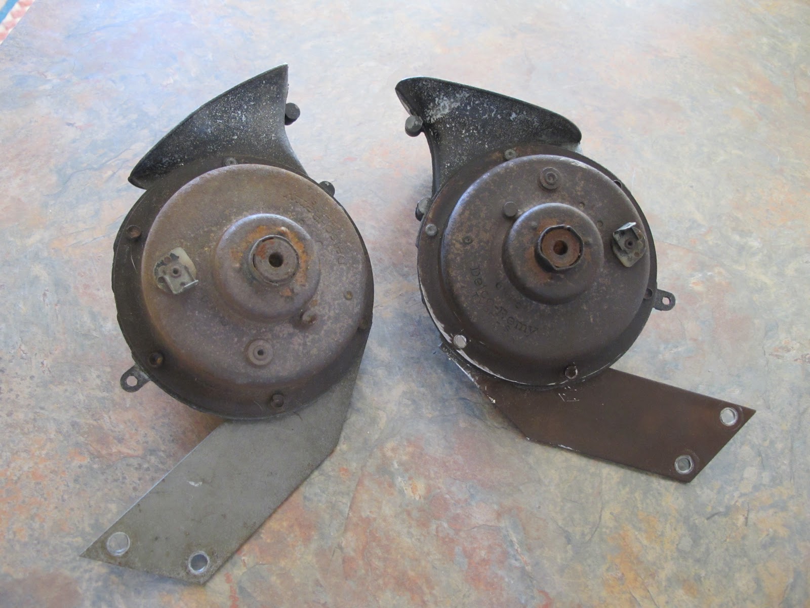 I have to say, the horns work great, I had to customize a bracket for them as the "universal" bracket they came with was too short and the originals I had were rust fused to the old horns. I used some leftover window metal from my last house project and they were an easy install, although my car sounds more like a Peugeot than an American car from the 50s. My son was horrified that I would put non-original parts on the car. I told him it was OK to use non-original parts if they are for safety reasons, like seat belts... He didn't really buy it, and I kept thinking about those guys that put semi horns on antiques, and what would make them want to do that. Oh well, I just want to get it on the road legally, I have to be careful now, because, I'm so close, I could cut some corners and regret it later, it's a quandary I'll have to live with.